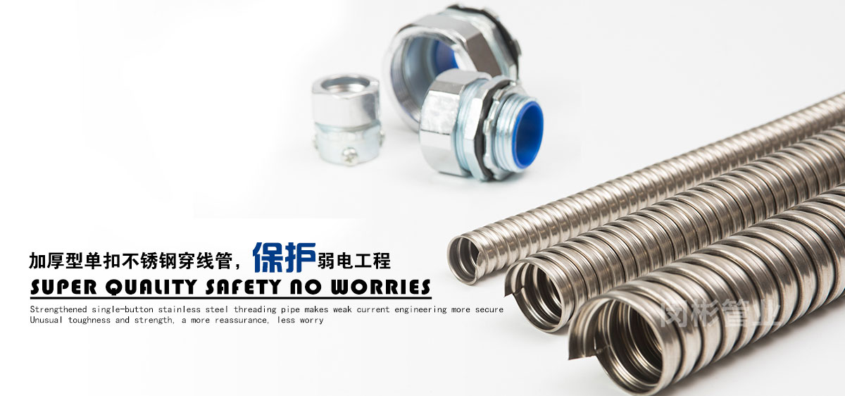 除此之外,公司還致力于金屬軟管接頭,普利卡管,普利卡接頭,不銹鋼穿線管的銷售。公司本著品種多、質(zhì)量?jī)?yōu)、服務(wù)好的宗旨,不斷開發(fā)、創(chuàng)新產(chǎn)品,以滿足日益發(fā)展的市場(chǎng)需要。產(chǎn)品主要包括:金屬軟管接頭 ,橋架接頭,塑料軟管接頭,AD接頭,不銹鋼接頭,普利卡接頭,包塑金屬軟管,不銹鋼軟管,不銹鋼編織軟管,普利卡軟管,尼龍軟管,塑料波紋管,尼龍拖鏈等機(jī)床配件。產(chǎn)品廣泛應(yīng)用于建筑、機(jī)床、鐵路、車輛、化工、汽車、監(jiān)控、建筑裝修、建筑裝飾、建材、裝修裝飾等行業(yè)。上海閔彬管業(yè)有限公司高質(zhì)量包塑管在實(shí)際使用中多家工程單位的認(rèn)可、使用與推廣。